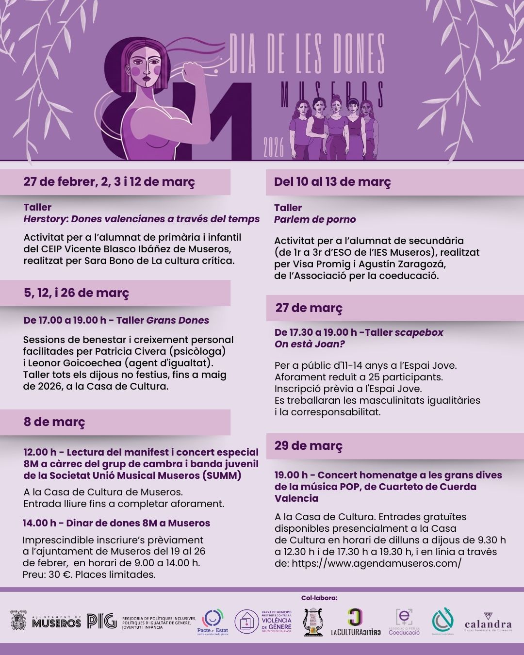 8M A MUSEROS Este 8 de març celebrem juntes el Dia Internacional de les Dones amb activitats per a reivindicar, compartir i gaudir. Consulta la programació: