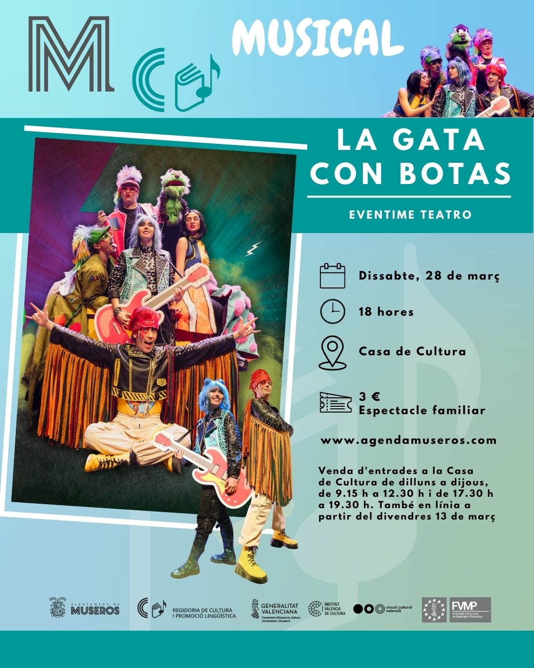 La gata con botas 18:00 28/03/2026 Entrades: https://www.agendamuseros.com/espectaculo/17/la-gata-con-botas.html Veure calendari complet